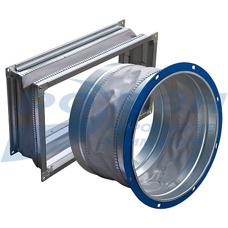 Вставки гибкие прямоугольные предназначены для предотвращения передачи вибрации от вентилятора к воздуховоду и применяются в вентиляционных системах, перемещающих воздух в интервалах температур от -45°С до +80°С.